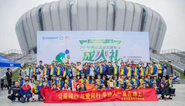 10月23日上午,百名东南大学学子公益单车成人礼活动启动。此次以“绽放青春,放飞梦想,历练成人路”为主题的活动由江苏省发展体育基金会、东南大学教育基金会主办。江苏捷安特自行车文体基金会、南京捷安特单车俱乐部承办。通过60km单车骑行的试炼,让刚进入大学的同学们经历一次知晓磨难与责任的成人礼。活动参加者只要顺利骑完全程,江苏捷安特自行车文体基金会将会以同学们的名义为苏北农村学校的孩子们捐赠100个“筑梦体育包”。