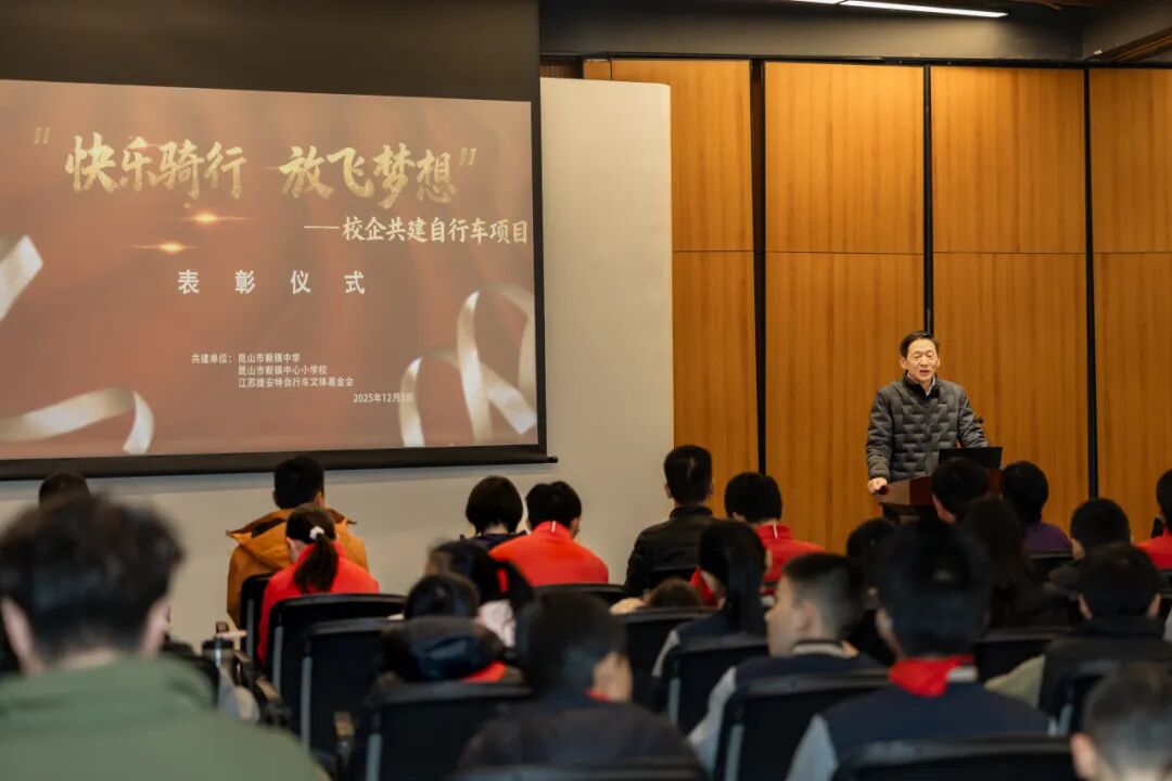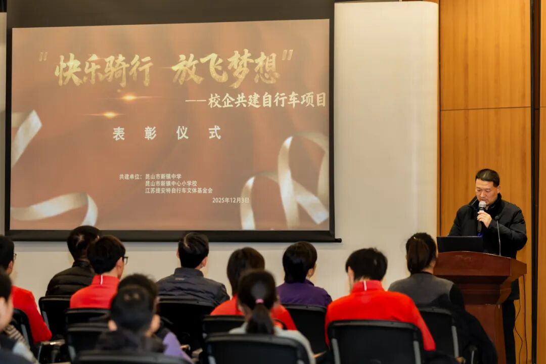 一场别开生面的荣耀庆典在捷安特中国总部隆重举行。由江苏捷安特自行车文体基金会与新镇中、小学校共同举办的 “快乐骑行 放飞梦想”——2025年新镇中、小学校自行车队表彰仪式在此圆满落幕。