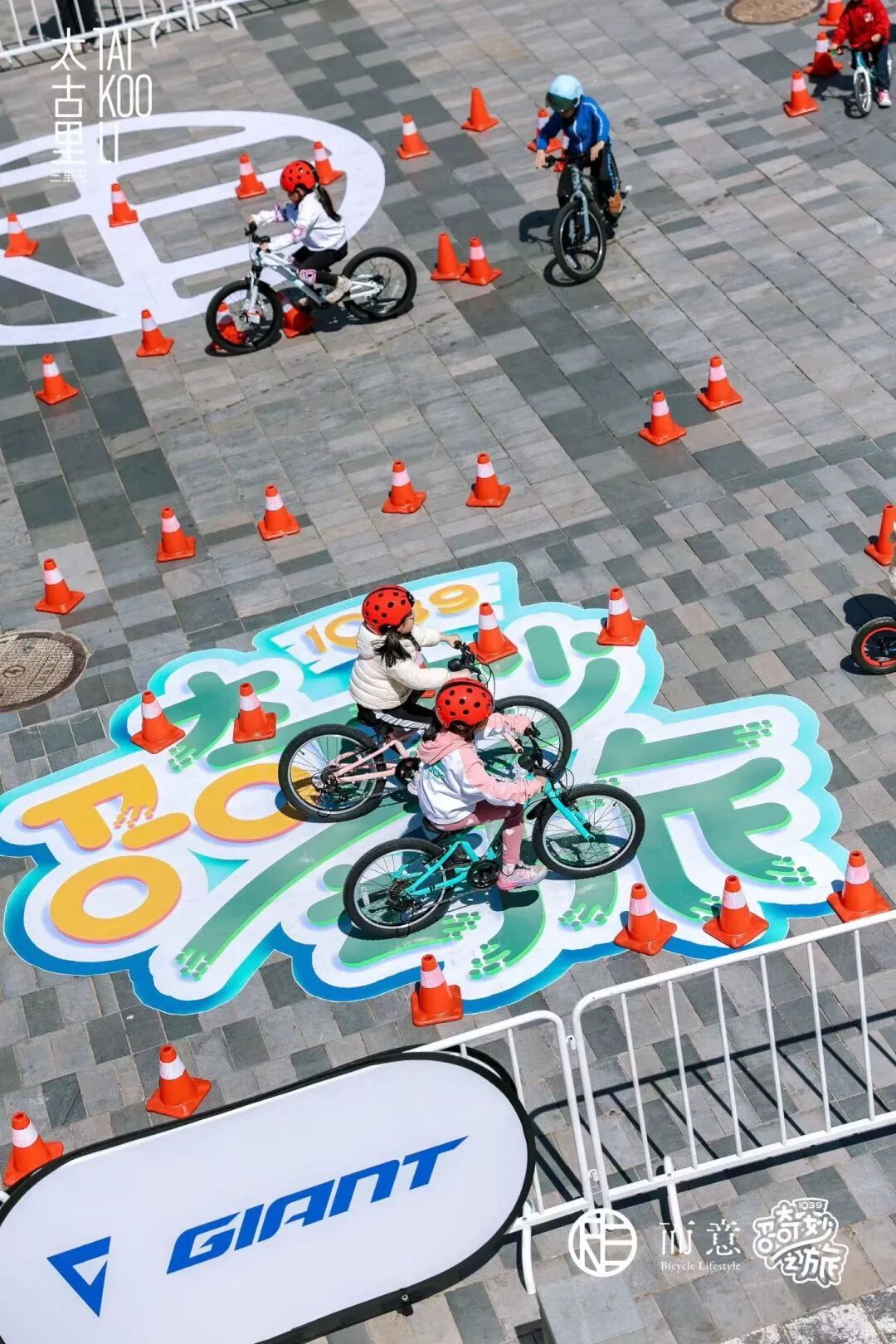 到了市集第二天,骑行课堂画风一转——亲子齐上阵,欢乐接力赛火热登场。家长朋友和小朋友们先后接力,完成绕桩、趣味障碍等挑战。
