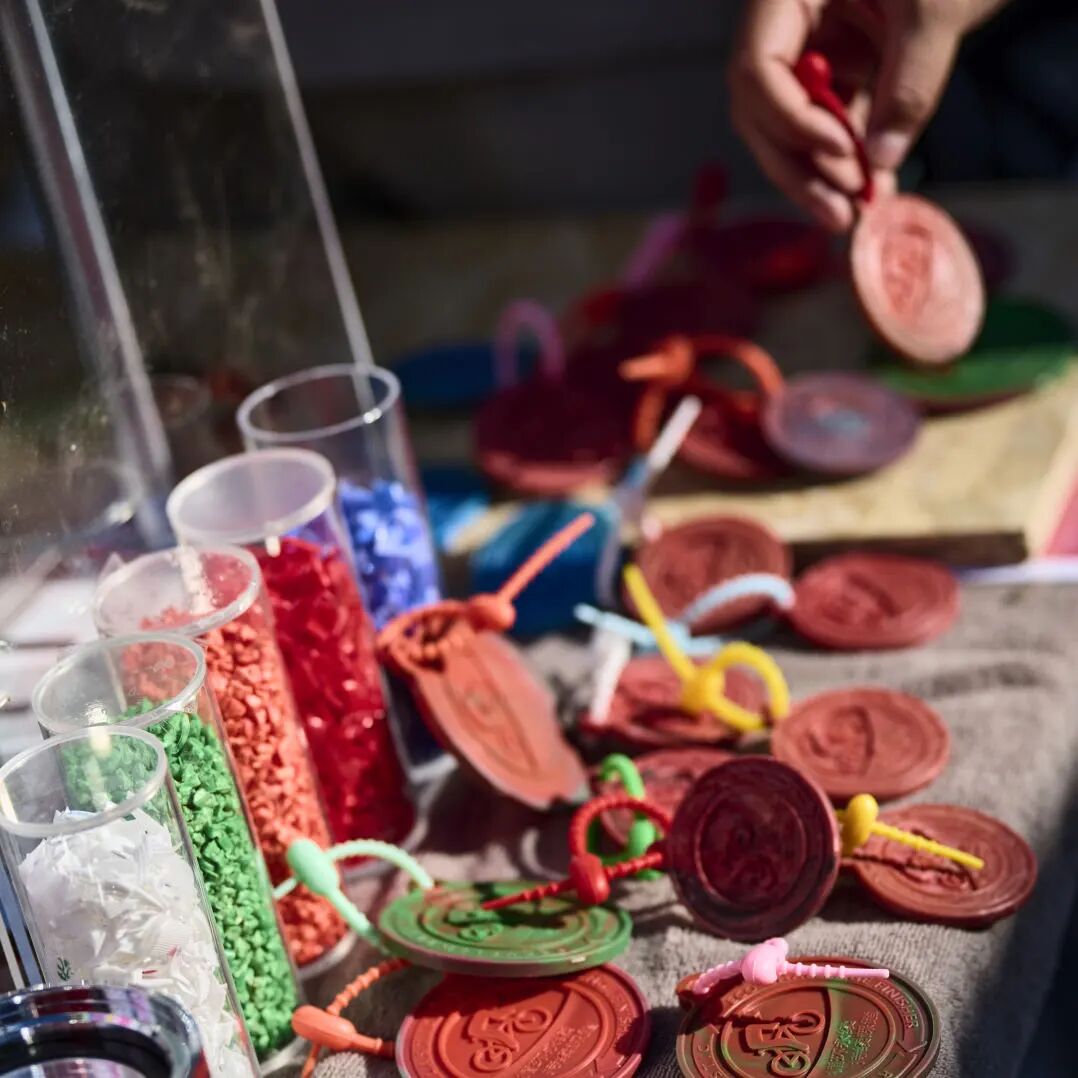 没错,只要你带来10个干净塑料瓶盖,就能在我们的摊位亲眼见证一场“注塑工艺”的迷你演示,然后带走一枚智能环保徽章。有人专门从家里攒了两天的瓶盖带过来,有小朋友把喝完的矿泉水瓶盖小心收好,还有骑友说:“平时随手就扔了,没想到它还能变成这么好看的纪念奖章。”