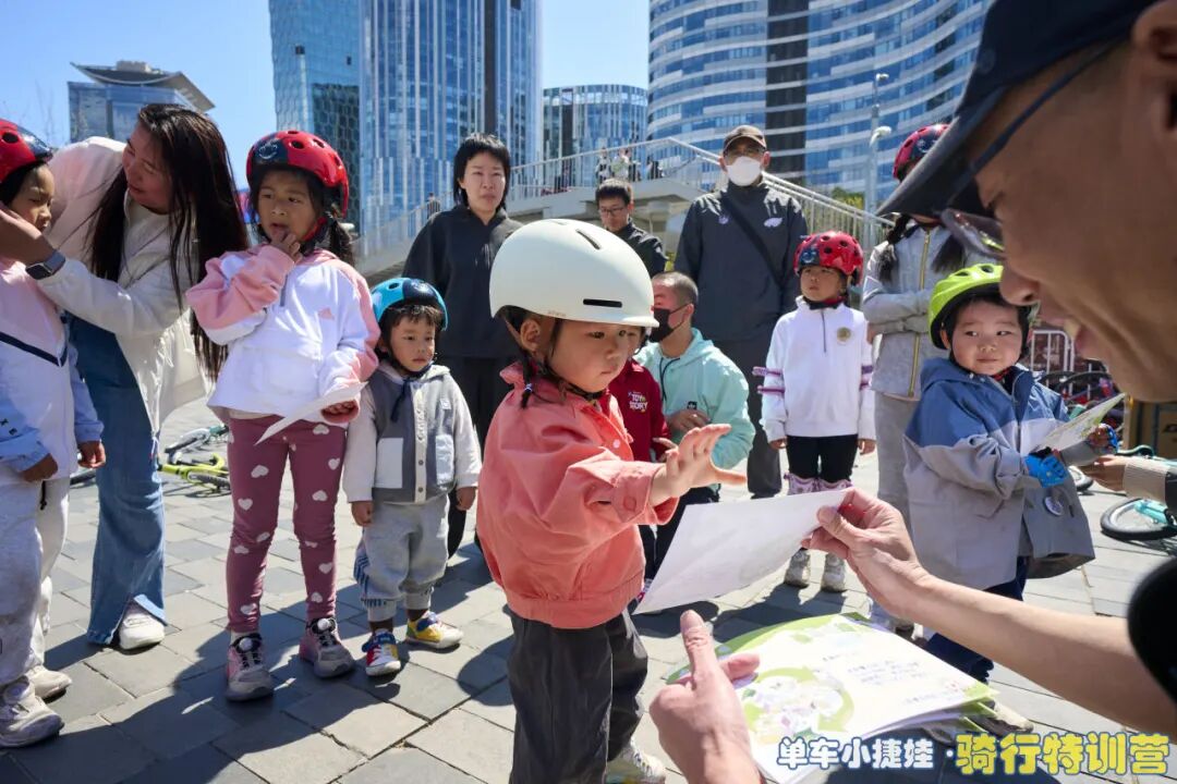 第一天的骑行教学萌点满满。最小的小捷娃只有3岁,戴上头盔,扶着小车,在教练的引导下第一次稳稳地踩下踏板。家长在旁边又紧张又骄傲:“他以前总怕摔,今天居然主动说想再骑一圈。”