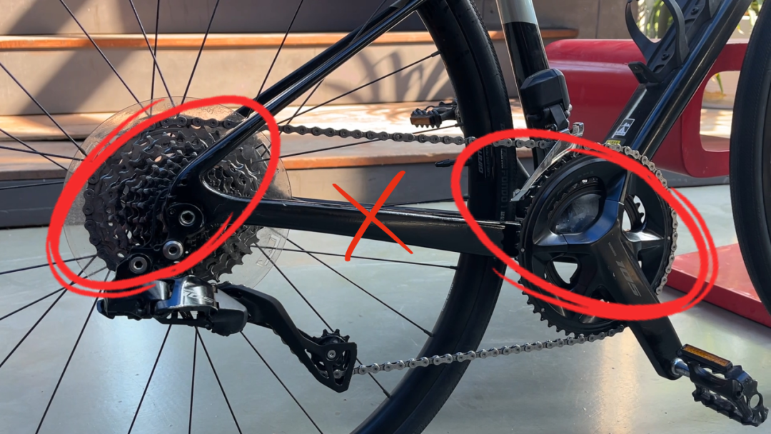将变速器调整至小盘带小飞,这一操作使链条处于松弛状态,释放长期使用中积累的张力,防止弹簧部件疲劳。