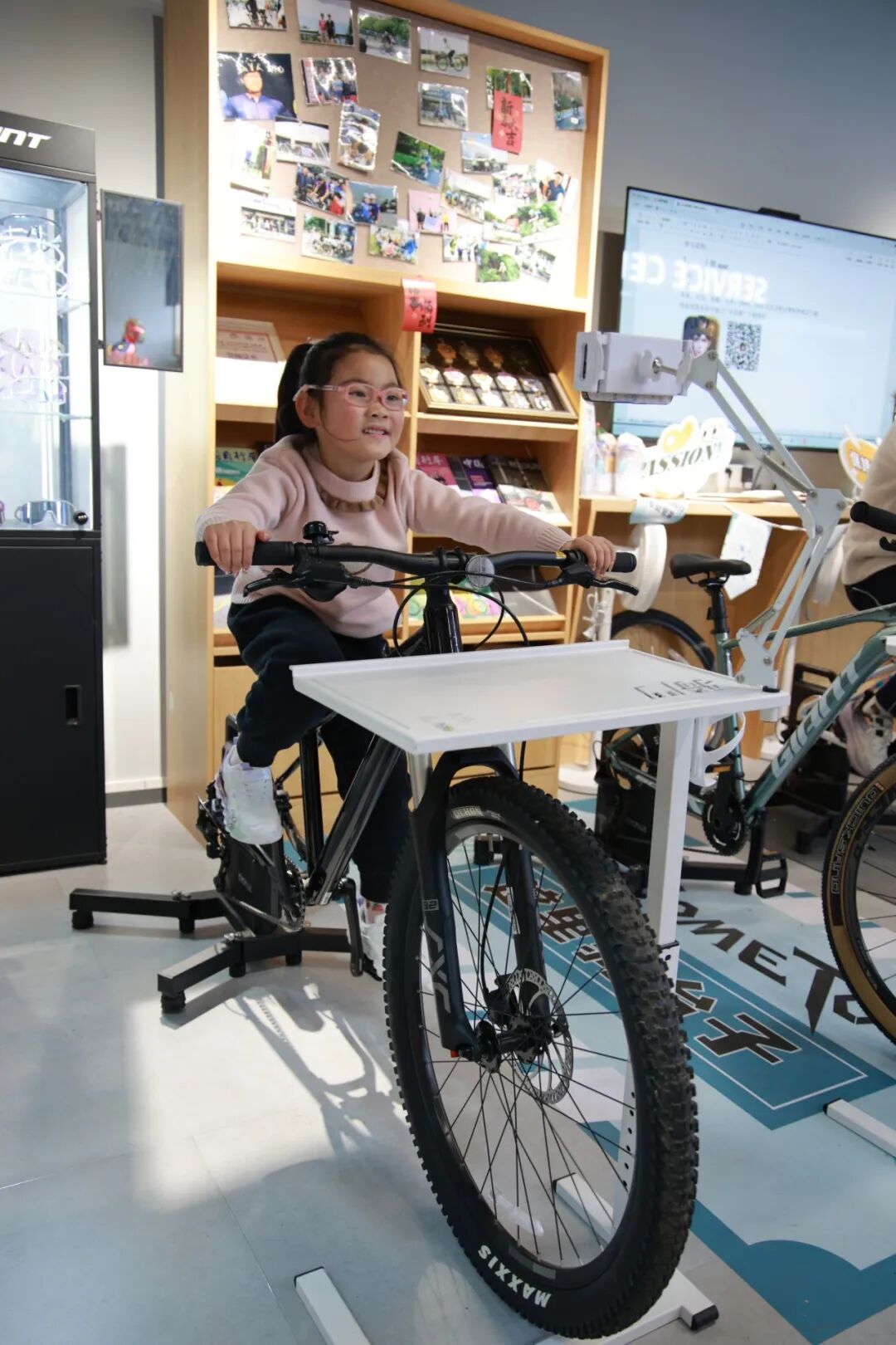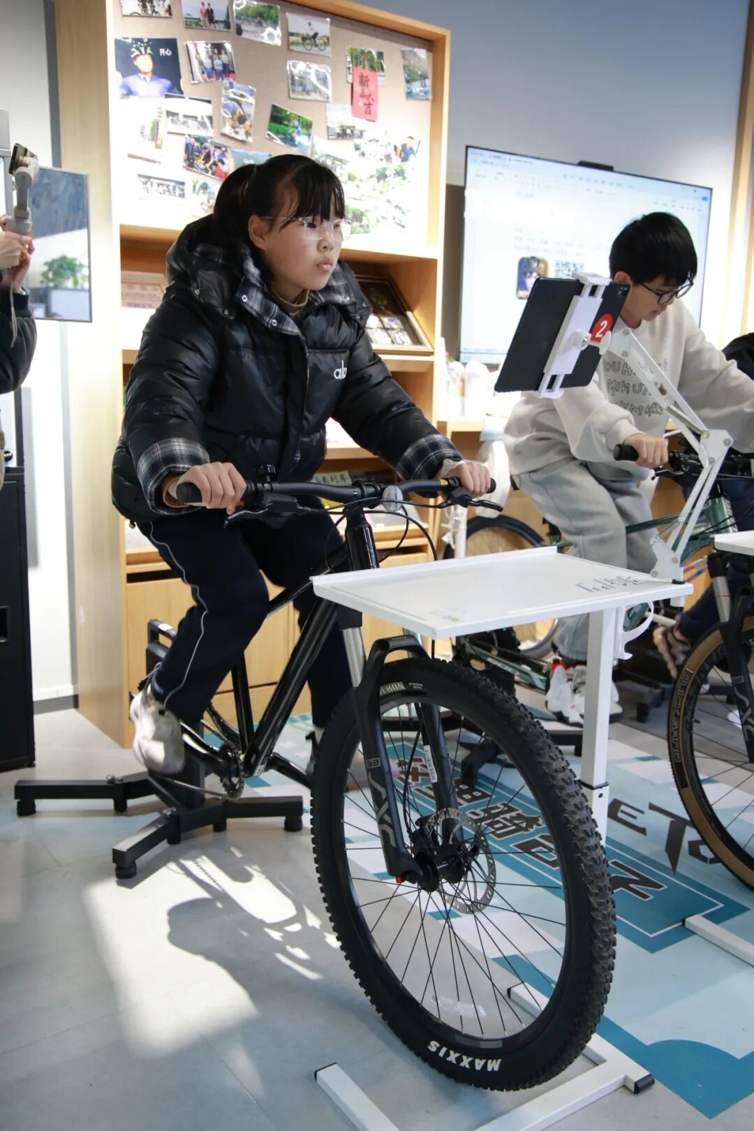 活动还没正式开始,不少同学已经早早来到驿站,跃跃欲试地踩上骑行台热身。