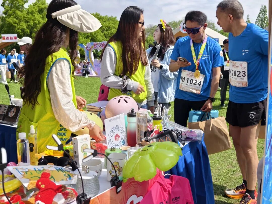 值得一提的是,在今年的摊位上,琳琅满目的骑行周边、公益纪念品吸引了大批爱心跑者和市民驻足。