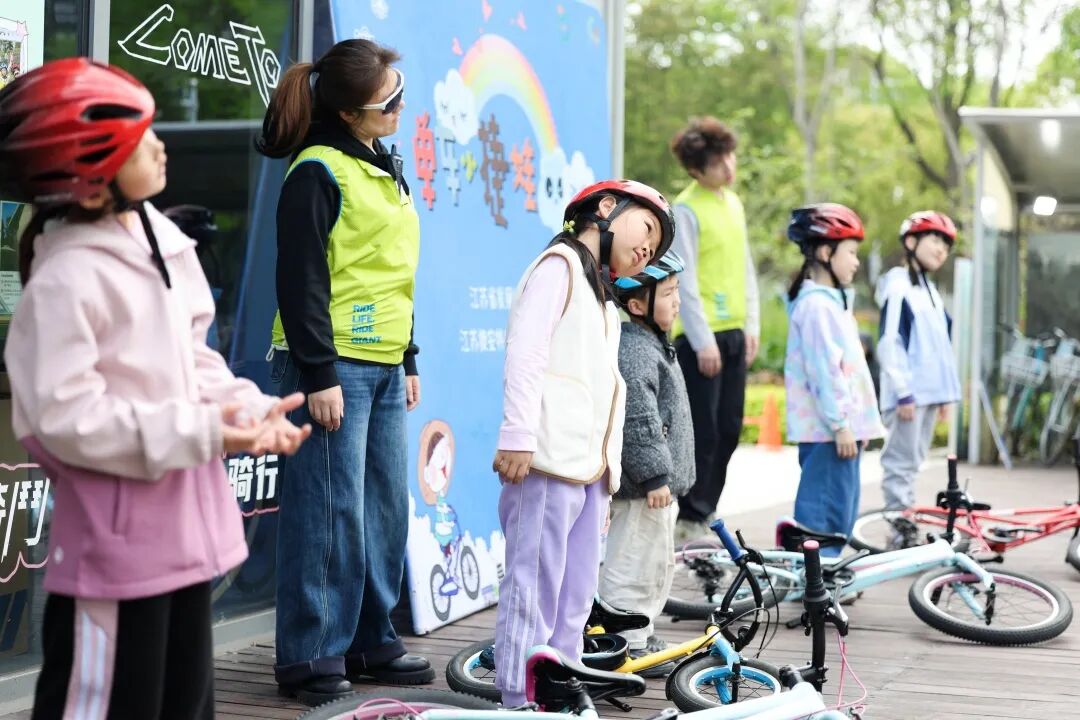 活动当天的森林公园南门骑行驿站,在捷安特专业教练团的带领下,化身童趣满满的骑行启蒙乐园。“单车小捷娃”们集合完毕,开启了一场从“歪歪扭扭”到“畅快驰骋”的奇妙蜕变之旅。